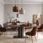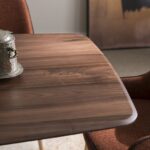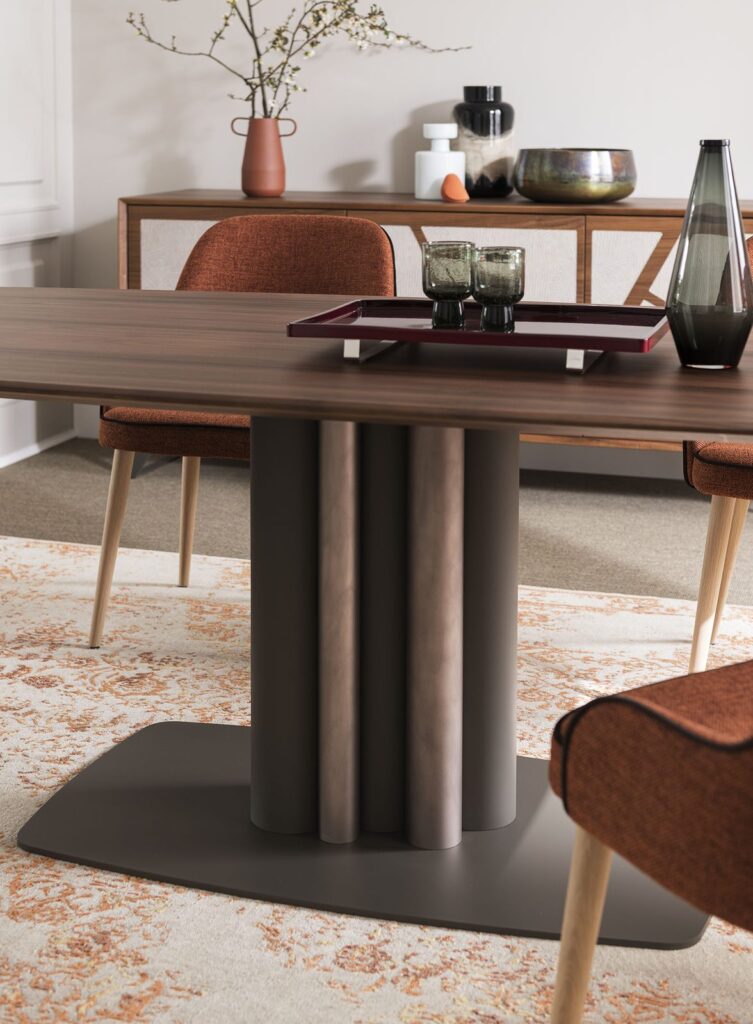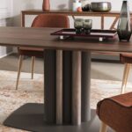 The Cannes table is the result of the pencil of the Altacorte style centre. Intrepid and imposing despite the small size of the base, the Cannes table is recognizable by the essential geometric lines of the metal base, enriched by a refined organ pipe motif that can be customized with brushed or hand-lacquered finishes. The sturdy support creates a balanced and original contrast with both solid wood and ceramic tops. The effect is a minimalist structure that highlights the extraordinary beauty of the materials and the expert craftsmanship typical of Made in Italy products.